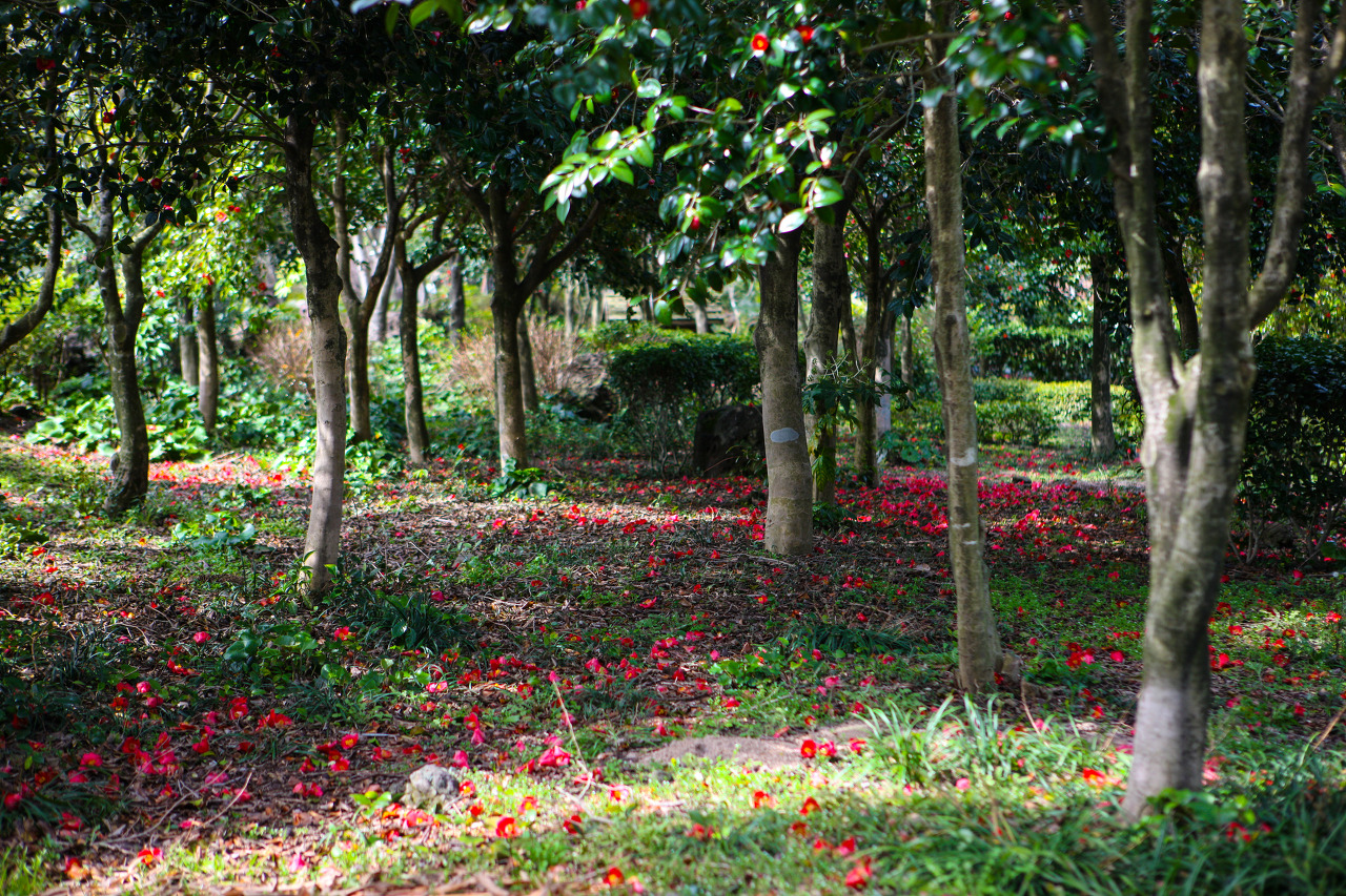 잔디 광장이나 생태 연못을 볼 수 있고, 숙박 가능한 별장도 있습니다. 겨울에도 생기를 머금은 동백꽃을 가득 둘러보실 수 있겠네요.